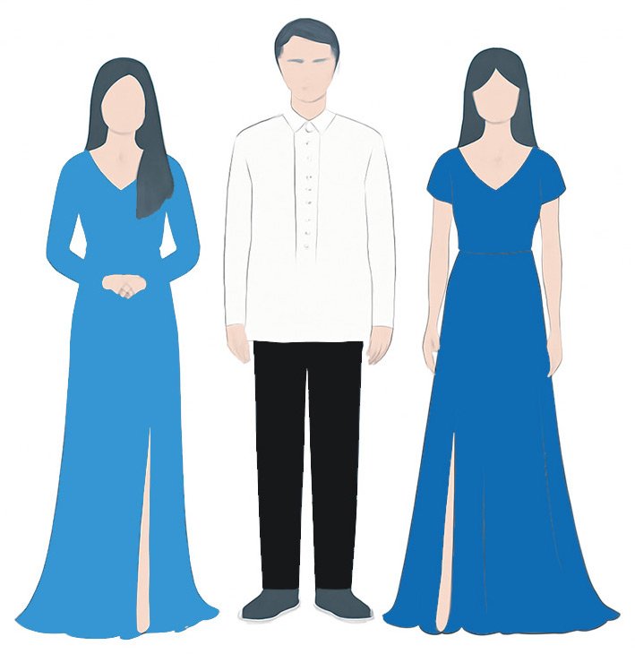 Evening elegance with a touch of blue. for more information, see the FAQ for dress code guidelines